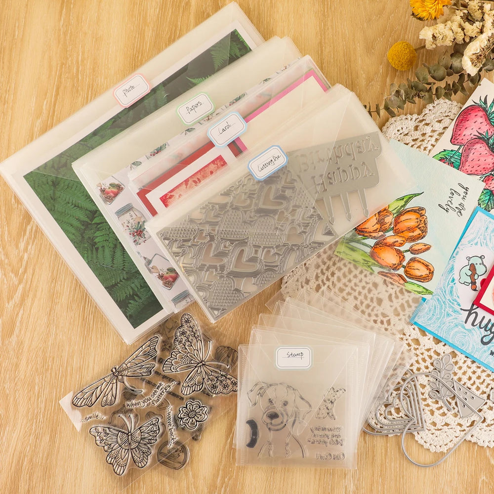 10pcs/lot Different Size Storage Pockets Envelopes Transparent Plastic Envelope Folder Bags for Storing Cutting Dies Paper Stamp