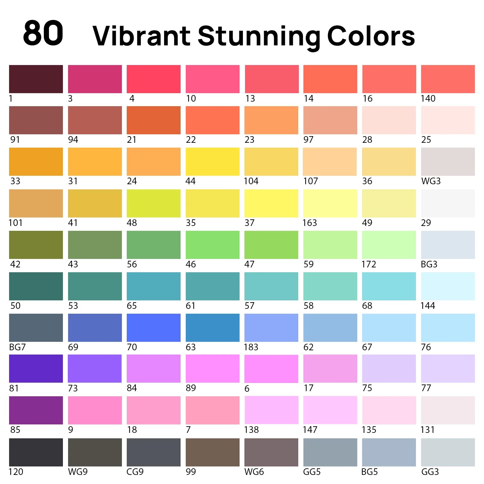 80 Alcohol Markers: Dual Tip, Permanent. Perfect for Coloring, Drawing, Sketching, Card Making.