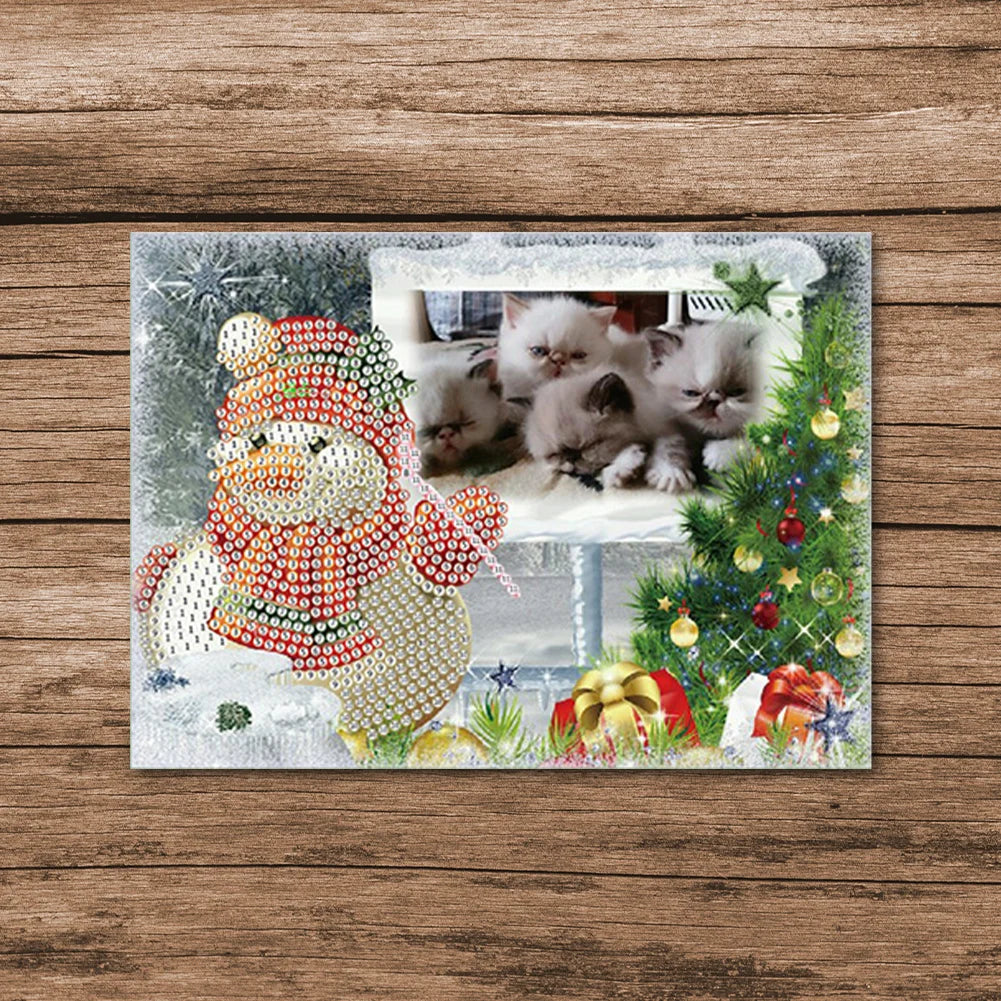 Christmas Diamond Painting Drill Card Snowmen 6PCS Diamond Drawing Holiday Card DIY Diamond Painting Greeting Thank You Card Crystal Rhinestone Card Gifts for Family Friends and Lover
