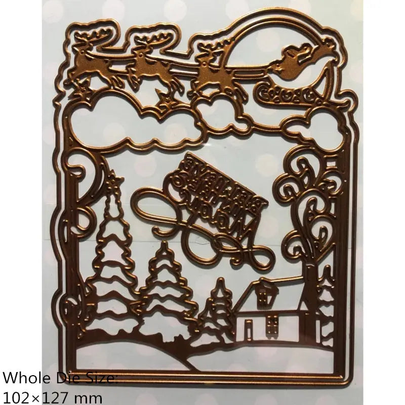 Christmas Night House Tree Metal Cutting Dies for Scrapbooking & Card Making
