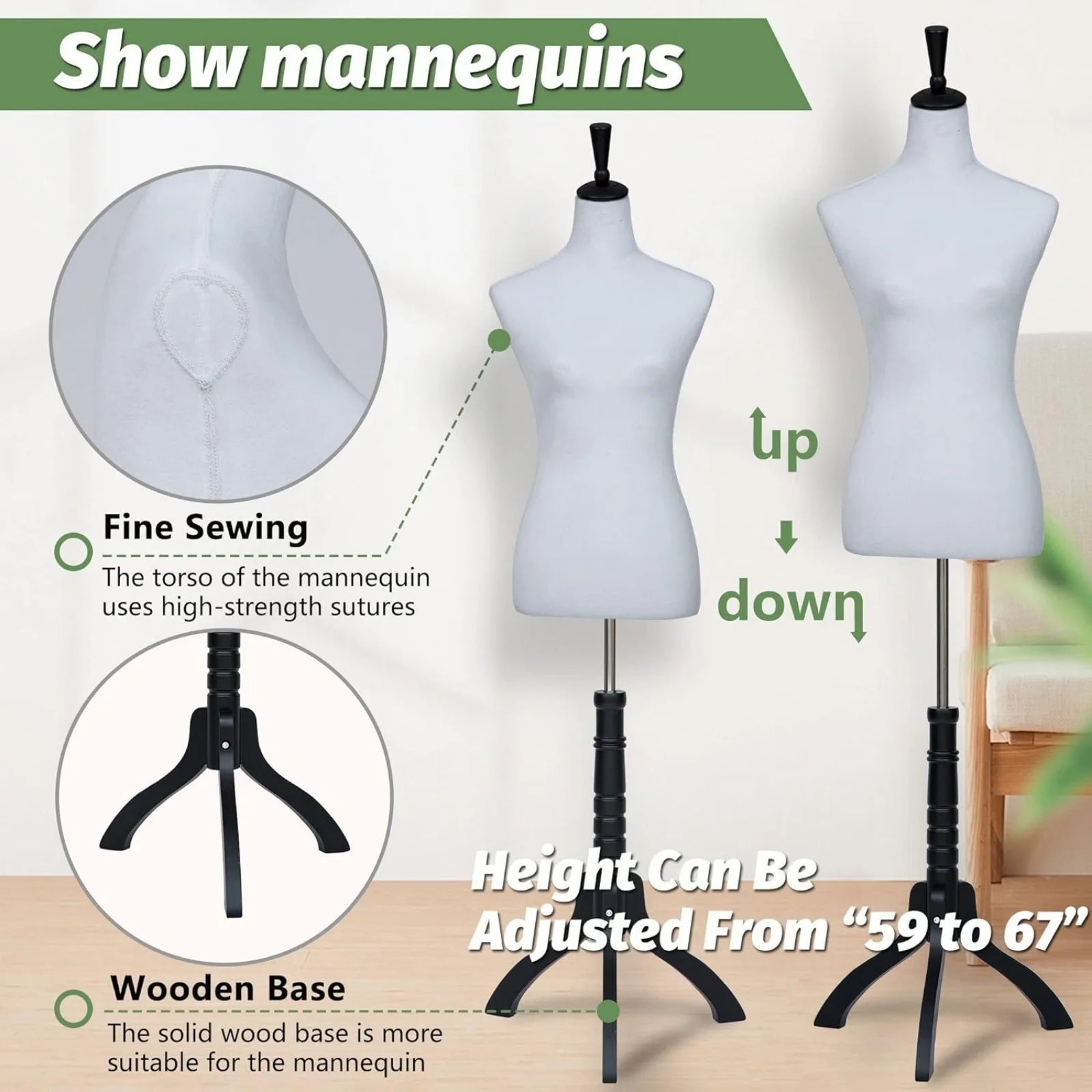 Dress Form Female Mannequin Torso w/Stand, Adjustable 59-67 in