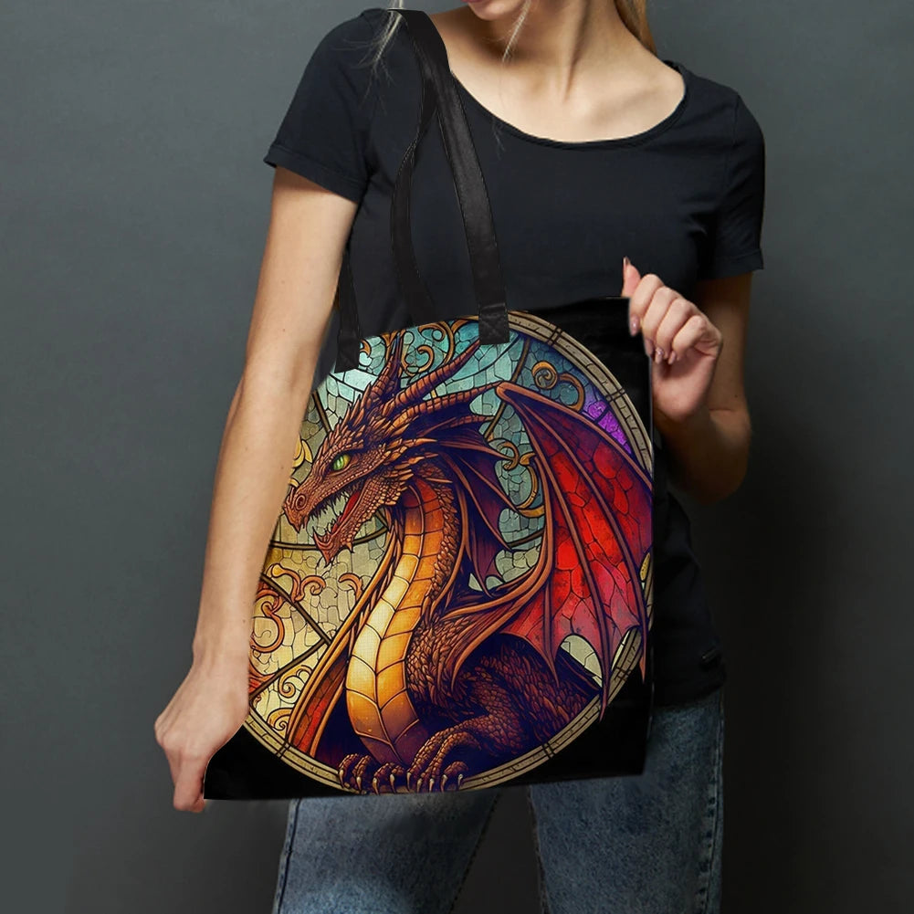 Embroidery Kit Personalized Bag Stained Glass Flying Dragon Hand Needlepoint Kit Canvas Bag Cross Stitch Kit for Beginners