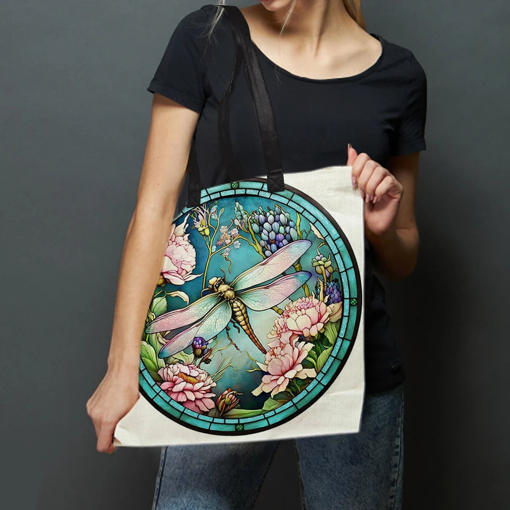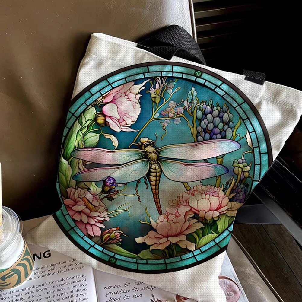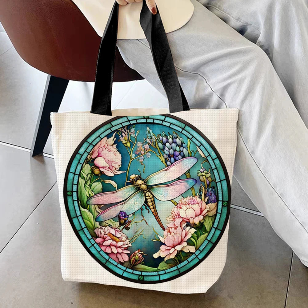 Embroidery Kit Stamped Embroidery Bag with Needle/Instruction/Color Threads Canvas Bag Cross Stitch Kit Stained Glass Dragonfly