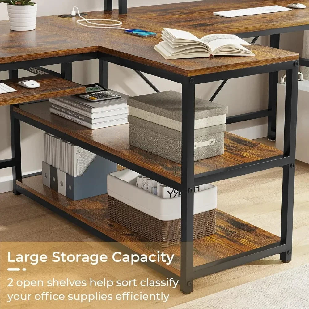 - 【Two Person Design】The 94.5 Inch - Length size allows 2 person to work side by side without compromising on space. Double working space with a 2-layer storage shelf in the middle. Perfect for your classmates, friends, workmate and you to study, play games and work together. This computer desk effortlessly blends with any furnishings in modern style.
