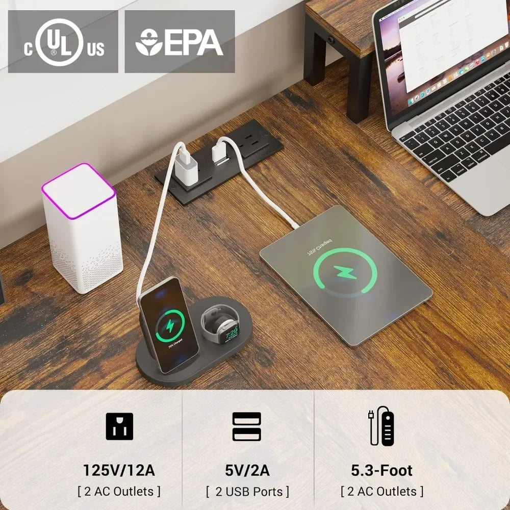 - 【Multifunctional】Equipped with 2 AC outlets and 2 PowerIQ-enabled USB charging ports to provide power for up to 4 devices simultaneously. The keyboard tray is ideal for 108-key or 87-key keyboard + mouse, which can free up more desktop space. The monitor stand can easily raise 2 monitors to a suitable height, reducing the tension and pain of the back and neck.