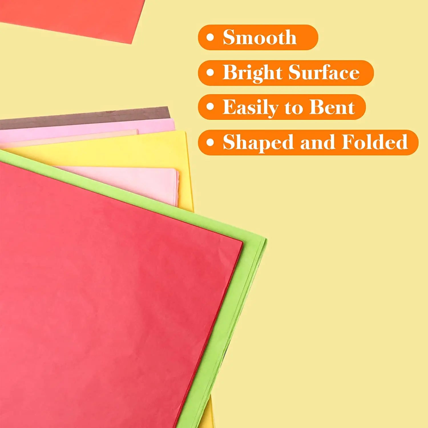 🌈【30 Vibrant Colors】Our bulk tissue paper is available in 30 vibrant colors. If you take the paper out and put it on the table, you'll find it's as pretty as a rainbow. And each color system contains many colors with different saturation. So you can find satisfying colorful tissue paper in a dark or light color. The combination of different colors will bring you a fantastic artistic feeling!