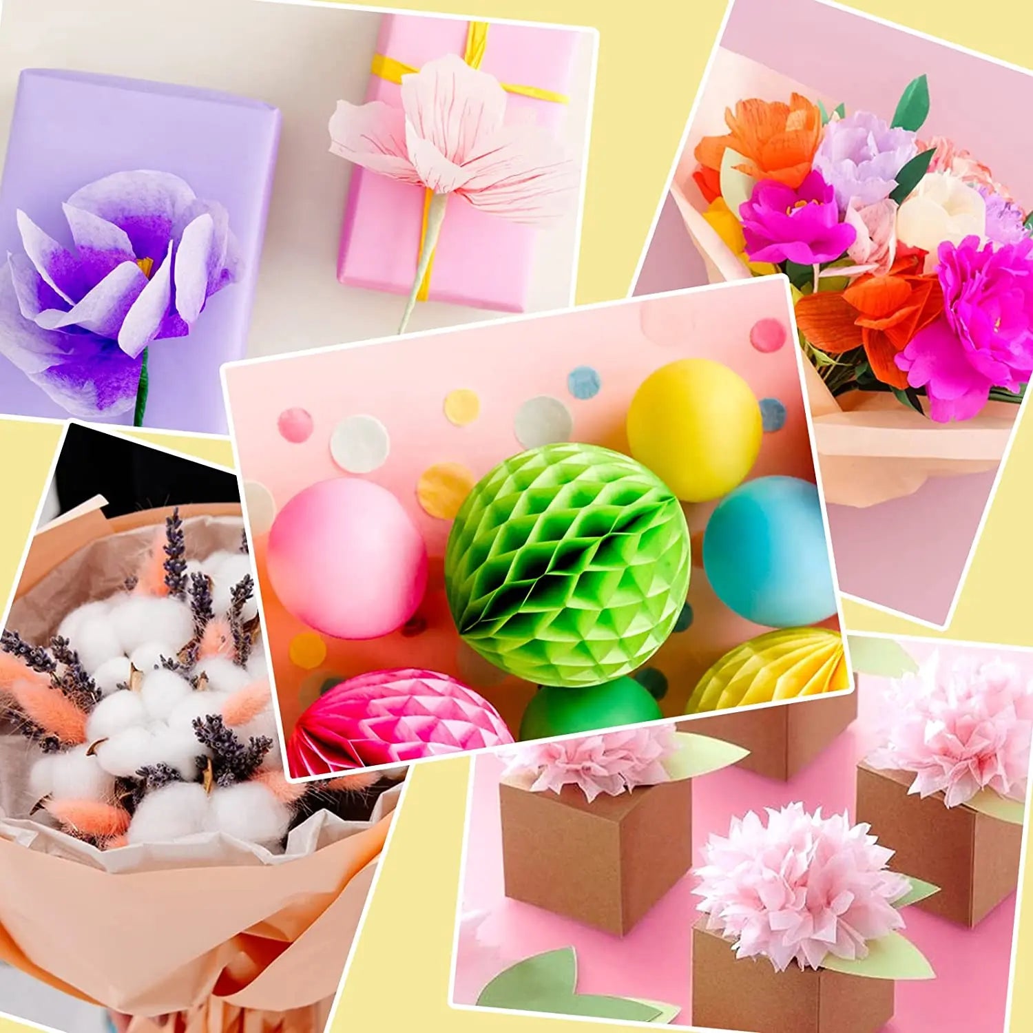 🎁【Perfect For Holiday】Decorative Tissue Paper is perfectly suitable for a holiday. It can add romantic ornaments to your holiday items, like gift packing, creative crafting, decoration, etc. A necessity for making tissue paper pompoms, tissue paper flowers, floral tissue paper decorations, tissue paper collages, and so on. Create an unforgettable holiday memory for you and your family!