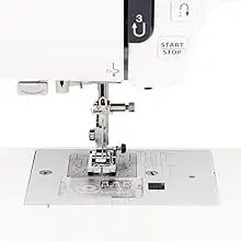 Start/stop button: The start/stop button allows the machine to sew without using the foot pedal. This feature is great for sewing long seams or for quick mending.