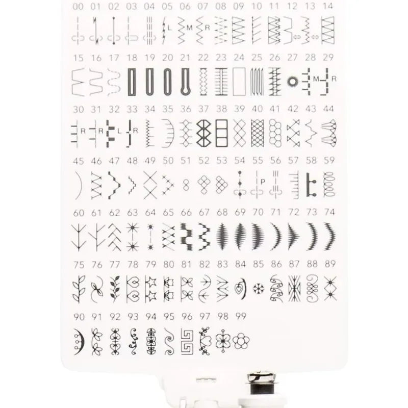 Removable Stitch Chart Easily select one of the 100 built-in stitches with the stitch chart. Remove the card for easy storage. |