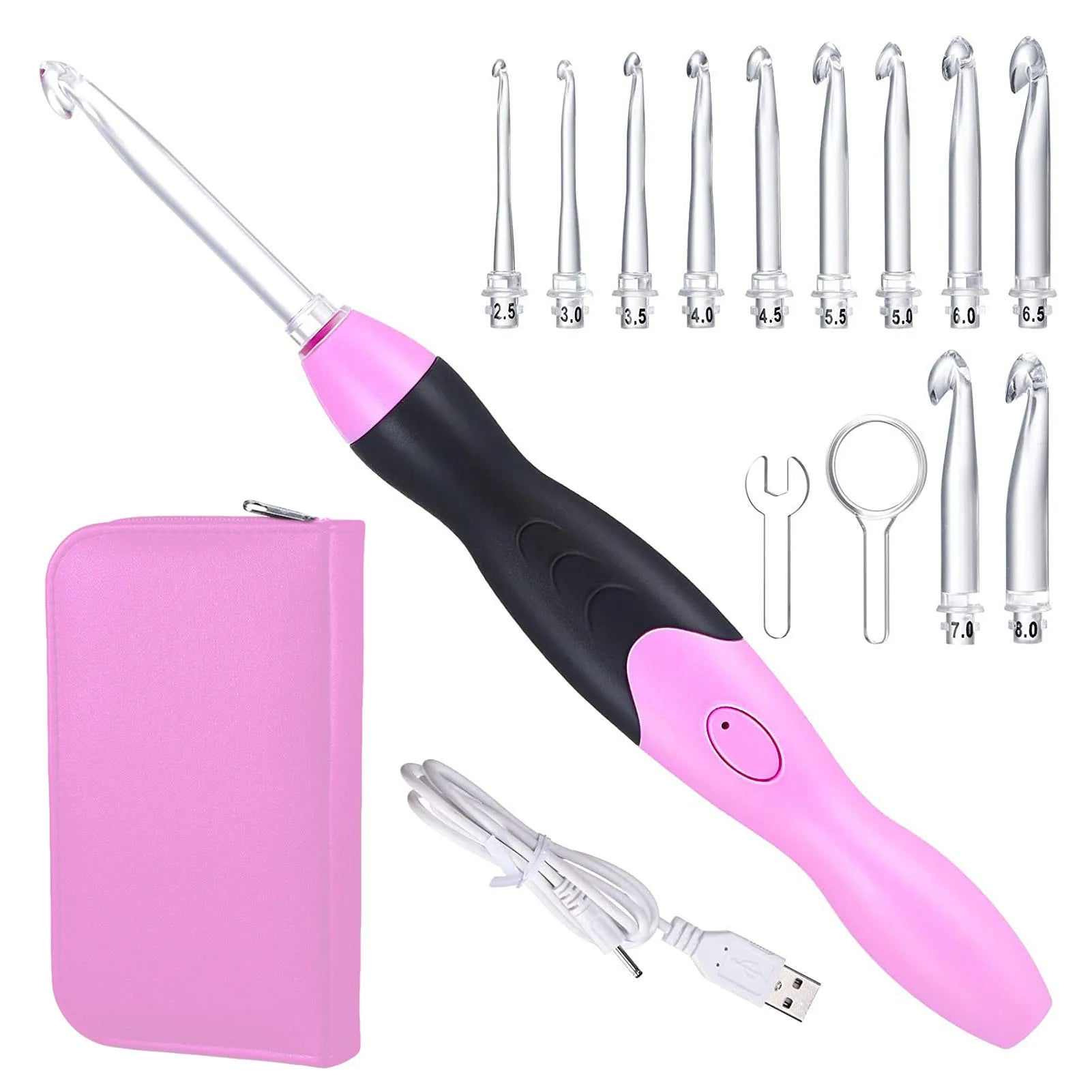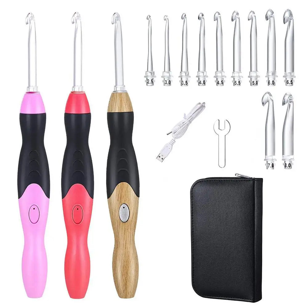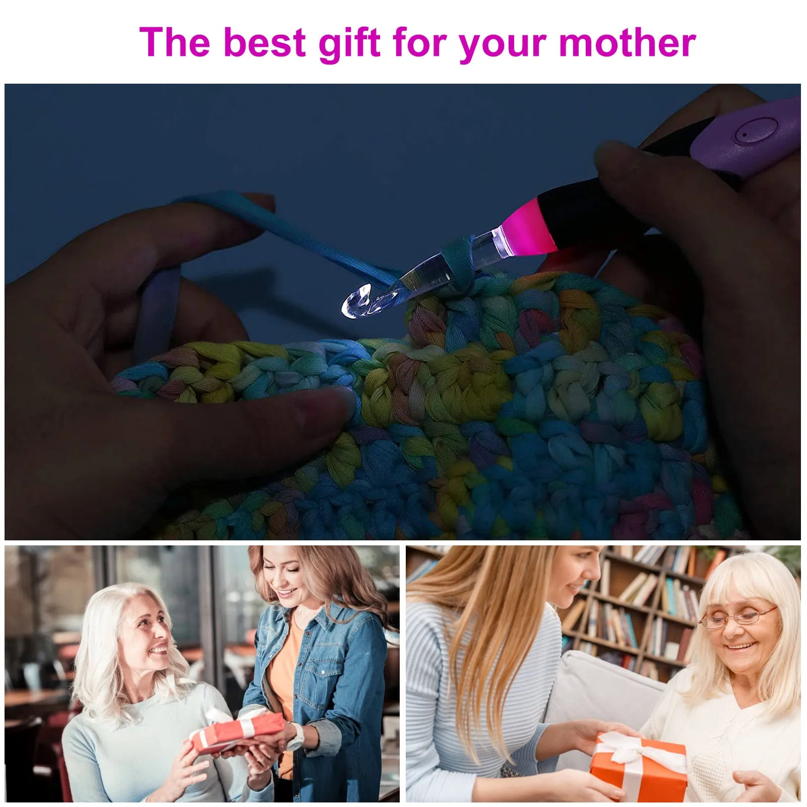 Knit Crochet Hooks & Kit 2mm-10mm W/Ergonomic Grip & Light