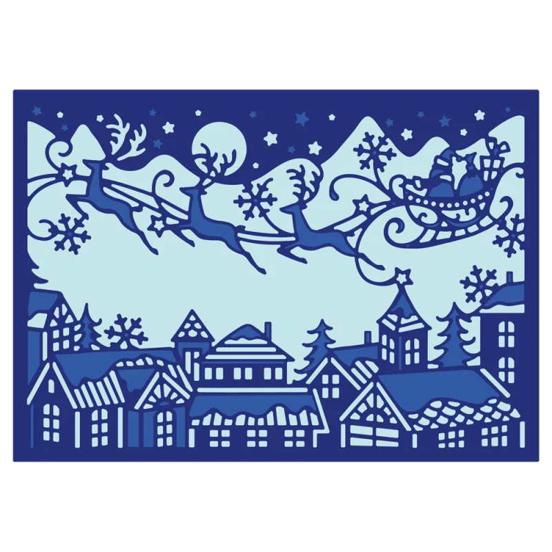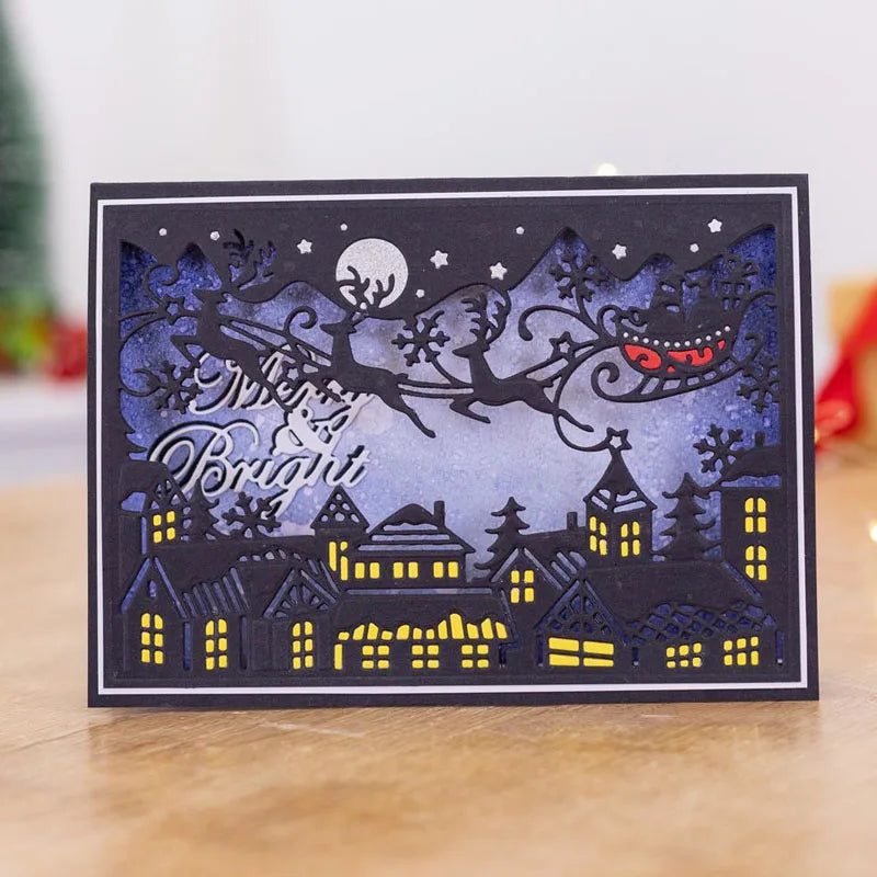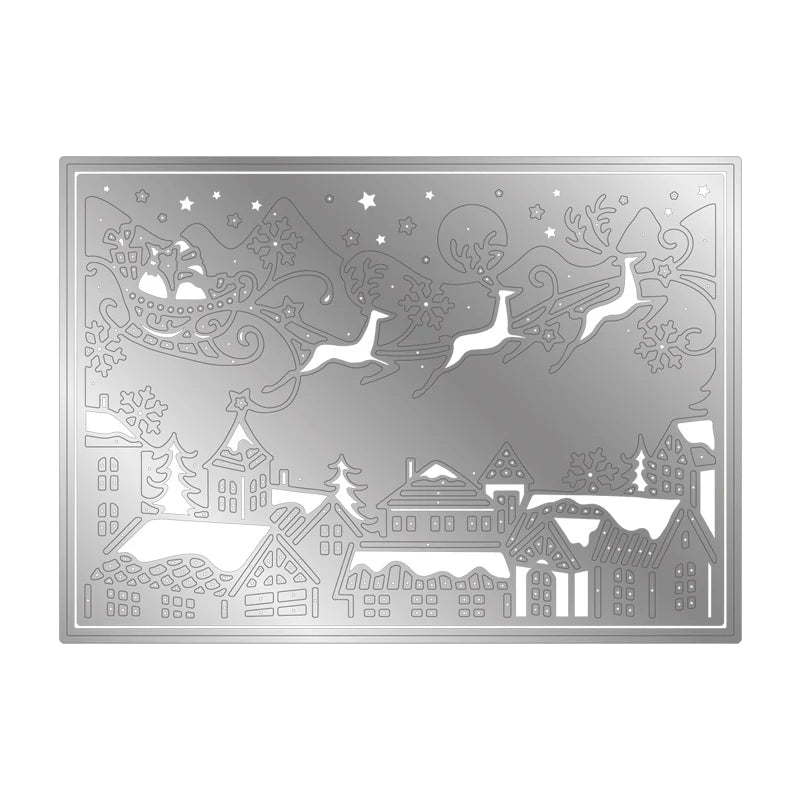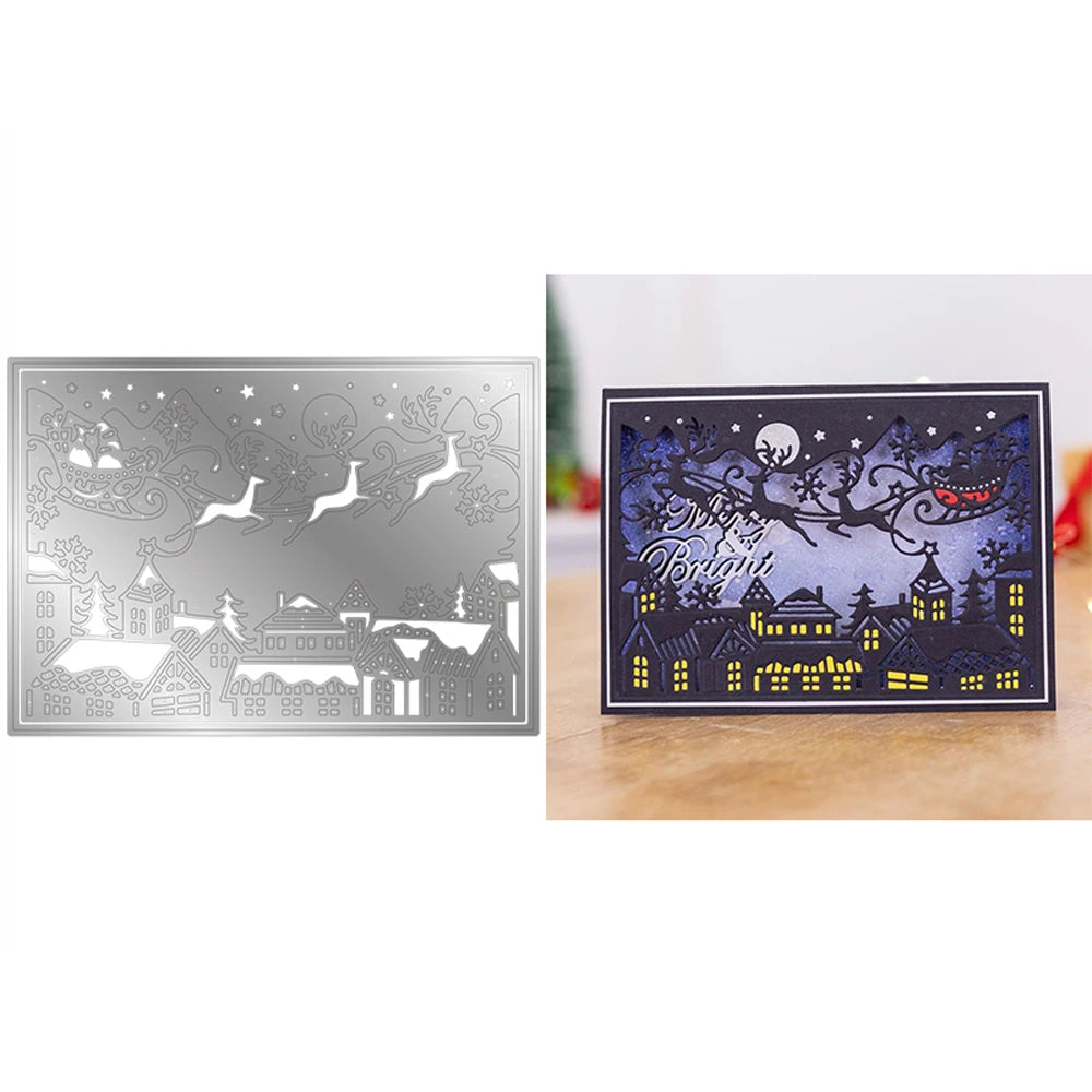 Reindeer Sled Cottage Night View Metal Cutting Dies Set for Scrapbooking Card Making