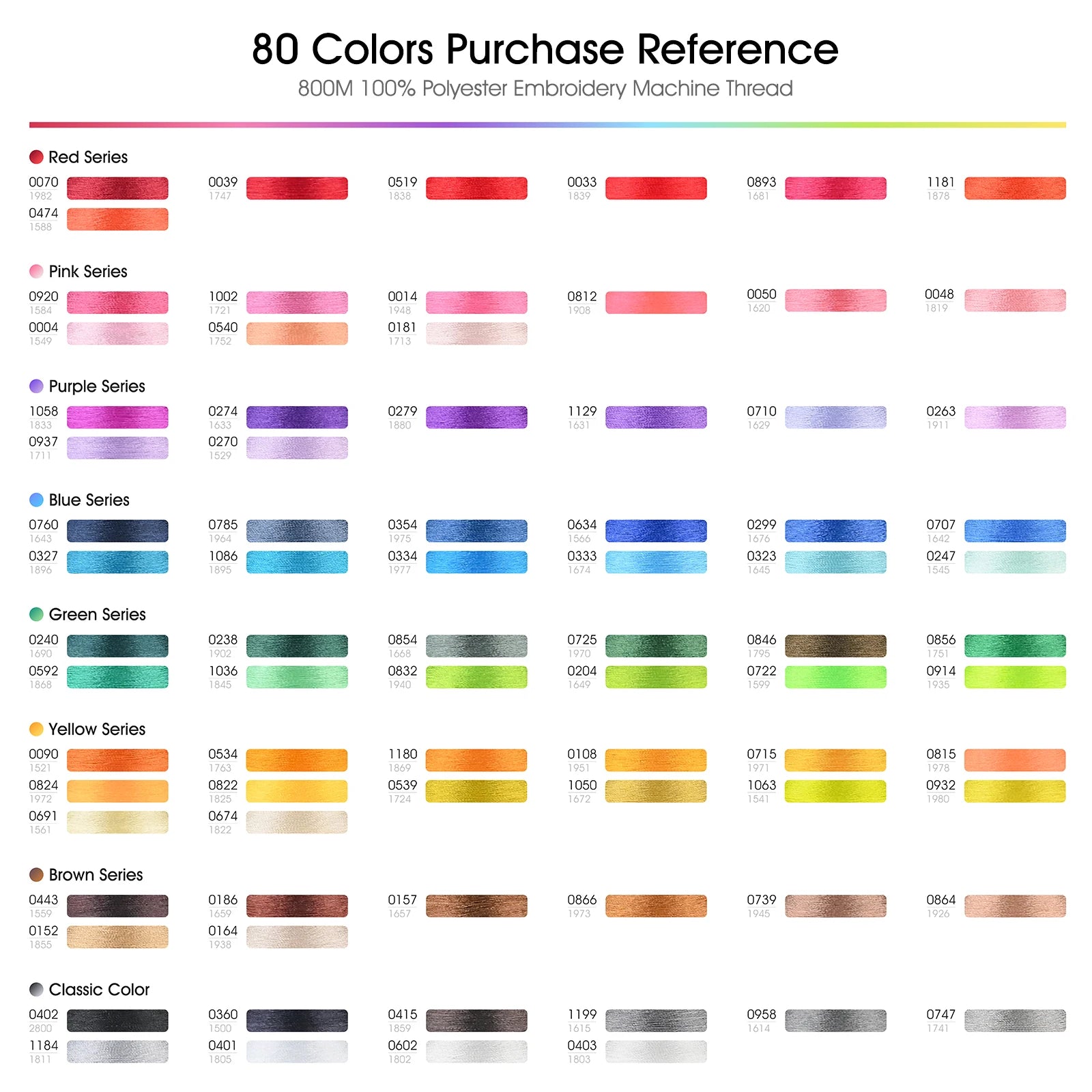 • 【100 Colours】RICHWORD, as a brand focusing on embroidery and sewing machines, has listened to the needs of users all over the world and selected the most popular 100 colours of embroidery thread for you to choose.