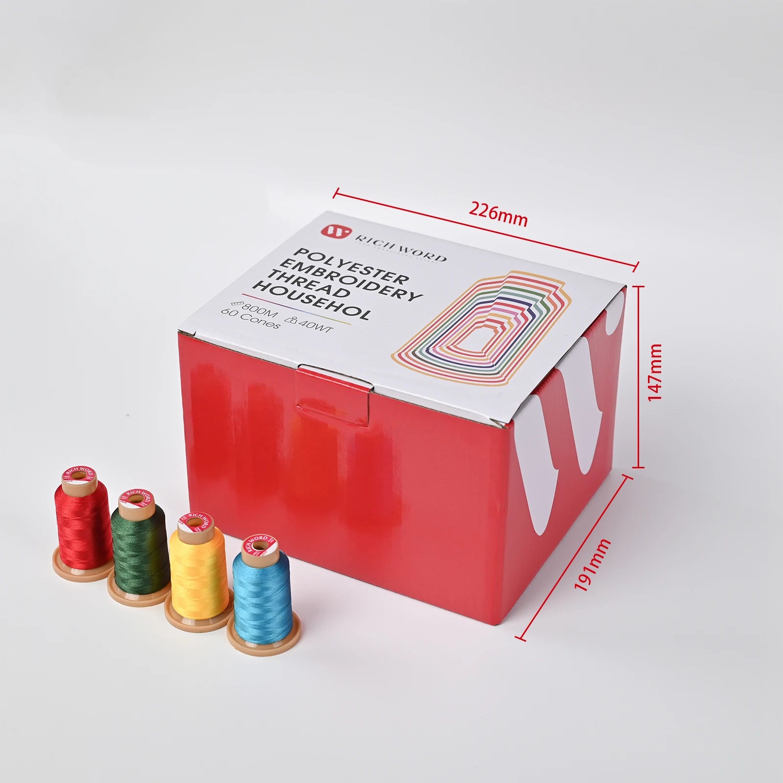 RICHWORD 60Pcs Colors Embroidery Threads 800M (875Y) Polyester Thread Kit Each Spool for Embroidery Machines & Sewing Machines