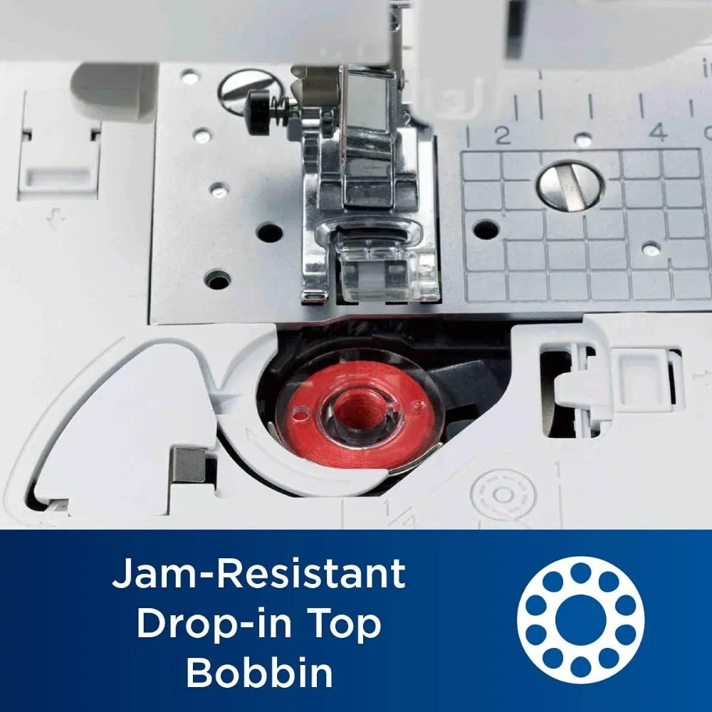 - Automatic needle threader and drop-in top bobbin: The Brother fast needle threading system takes care of threading the needle for you and a convenient, jam resistant drop-in top bobbin