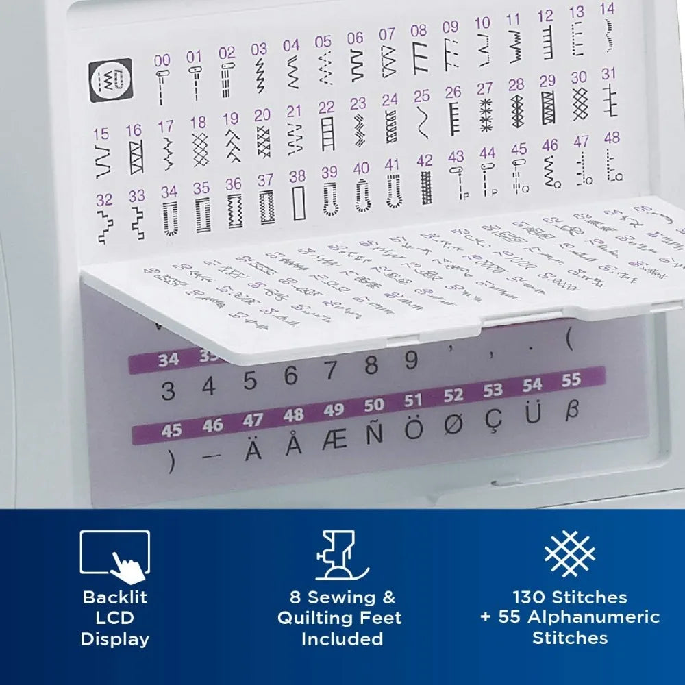 - 185 Unique built-in stitches: The HC1850 includes 130 sewing stitches including 8 styles of auto-size buttonholes, plus 55 alphanumeric sewing stitches
