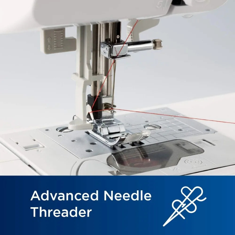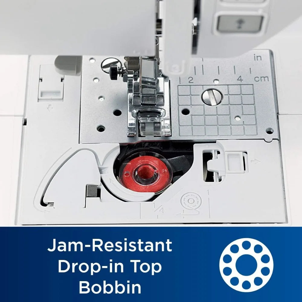 - Advanced needle threader and drop-in top bobbin: This sewing and quilting machine includes an advanced needle threading function that easily pushes thread through the needle with the press of a lever and a jam resistant drop-in top bobbin