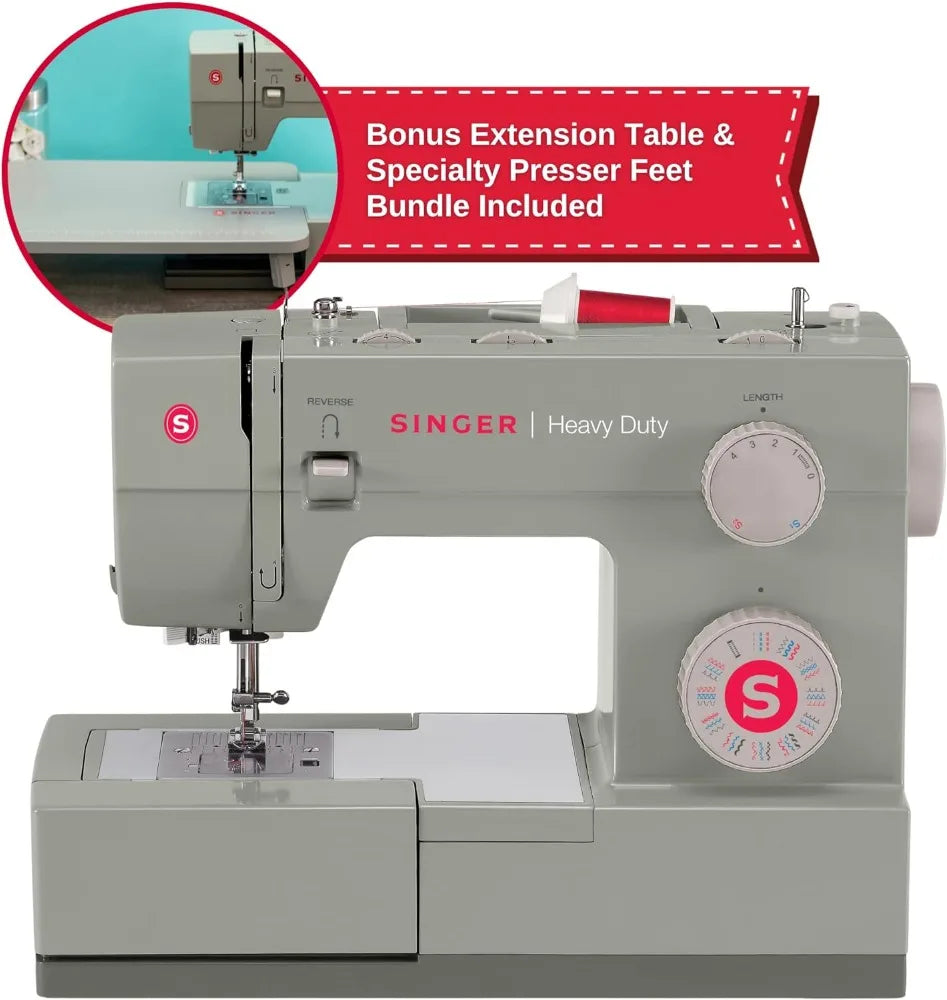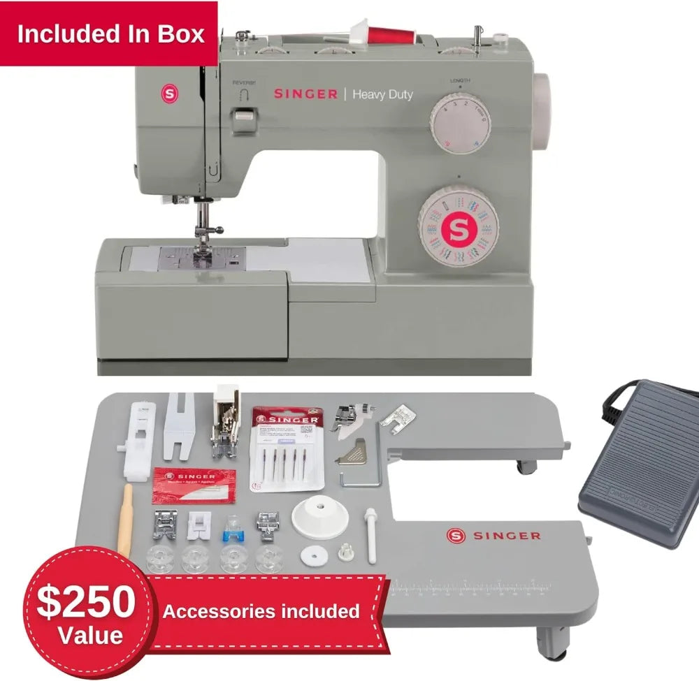 - HEAVY DUTY SEWING BUNDLE: Easily add a professional touch to your projects at an incredible value! Bundle Includes SINGER Heavy Duty 4452 Sewing Machine plus Bonus Extension Table Plus Specialty Presser Feet. $250 Value in Accessories!