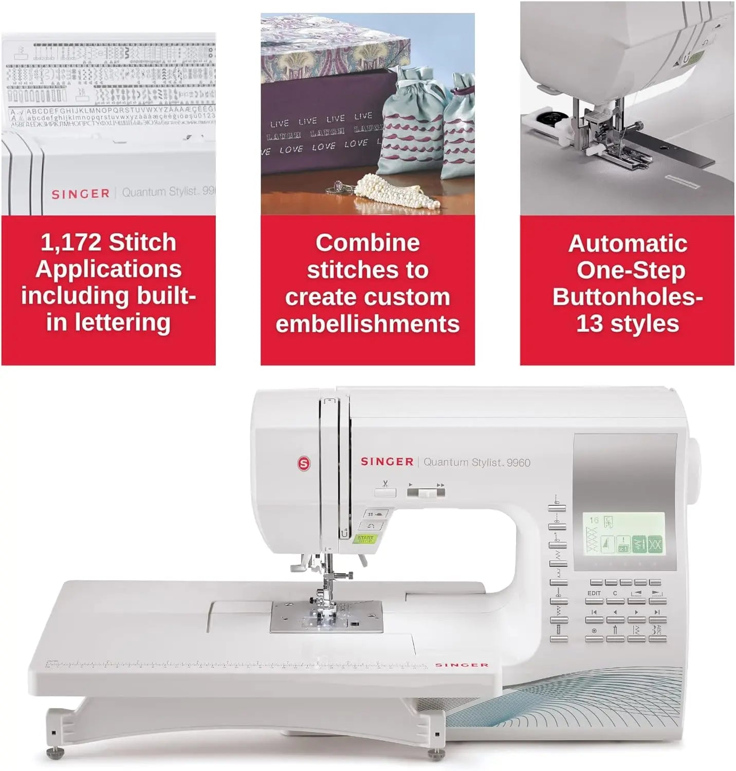 - SINGER COMPUTERIZED SEWING MACHINE: The SINGER Quantum Stylist 9960 portable sewing machine has loads of ease-of-use features to allow you to fulfill your creative dreams. Has a large selection of stitches including basic, stretch and decorative stitches for fashion sewing, quilting, home decor and crafting. There's even a selection of fonts to personalize projects.