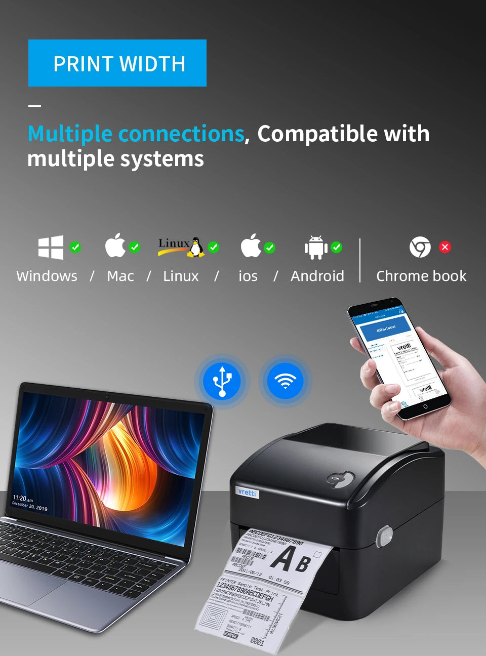 For Windows (7 and later), Mac OS,Chrome OS, you can connect the desktop label printer via USB cable.